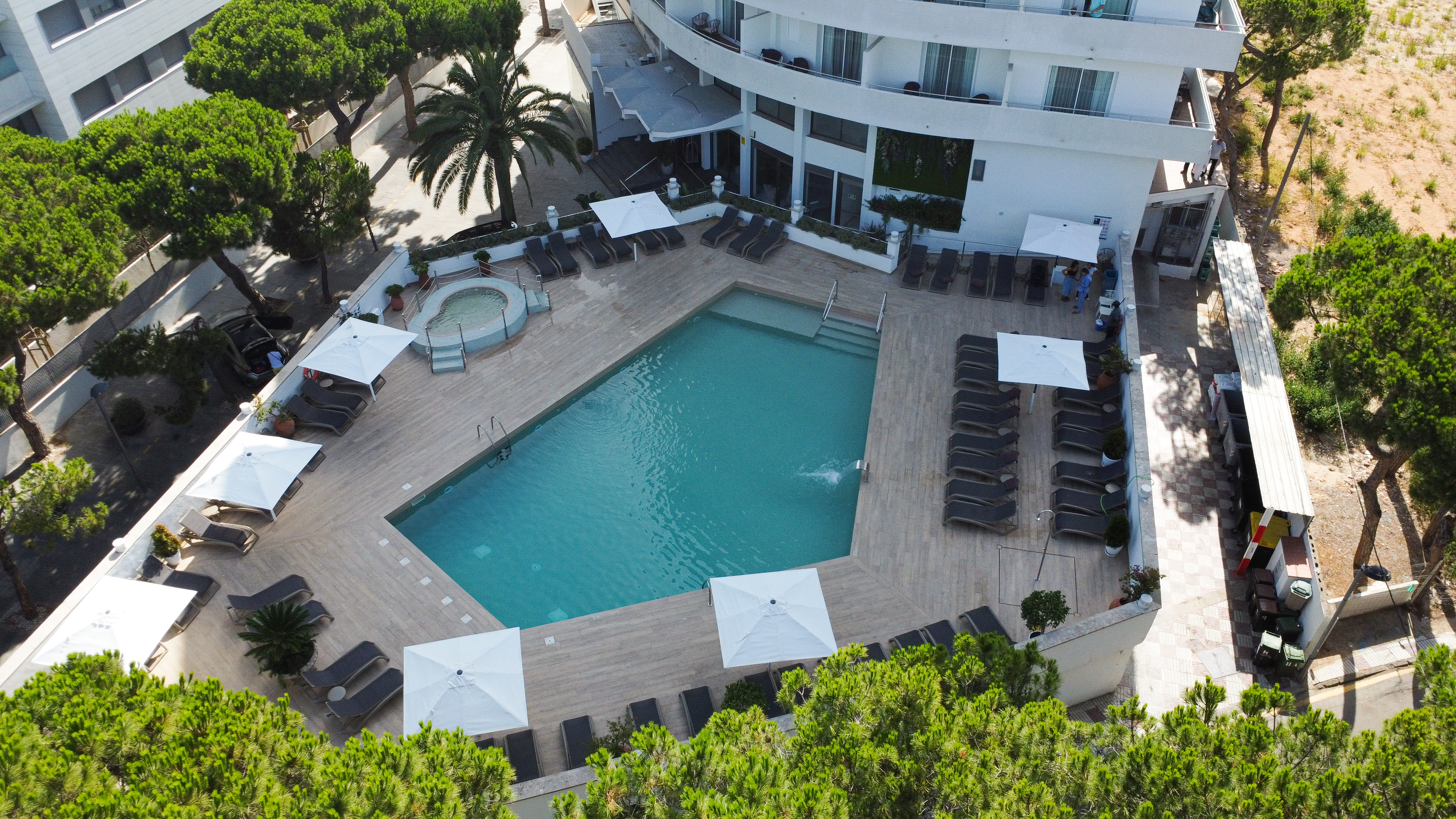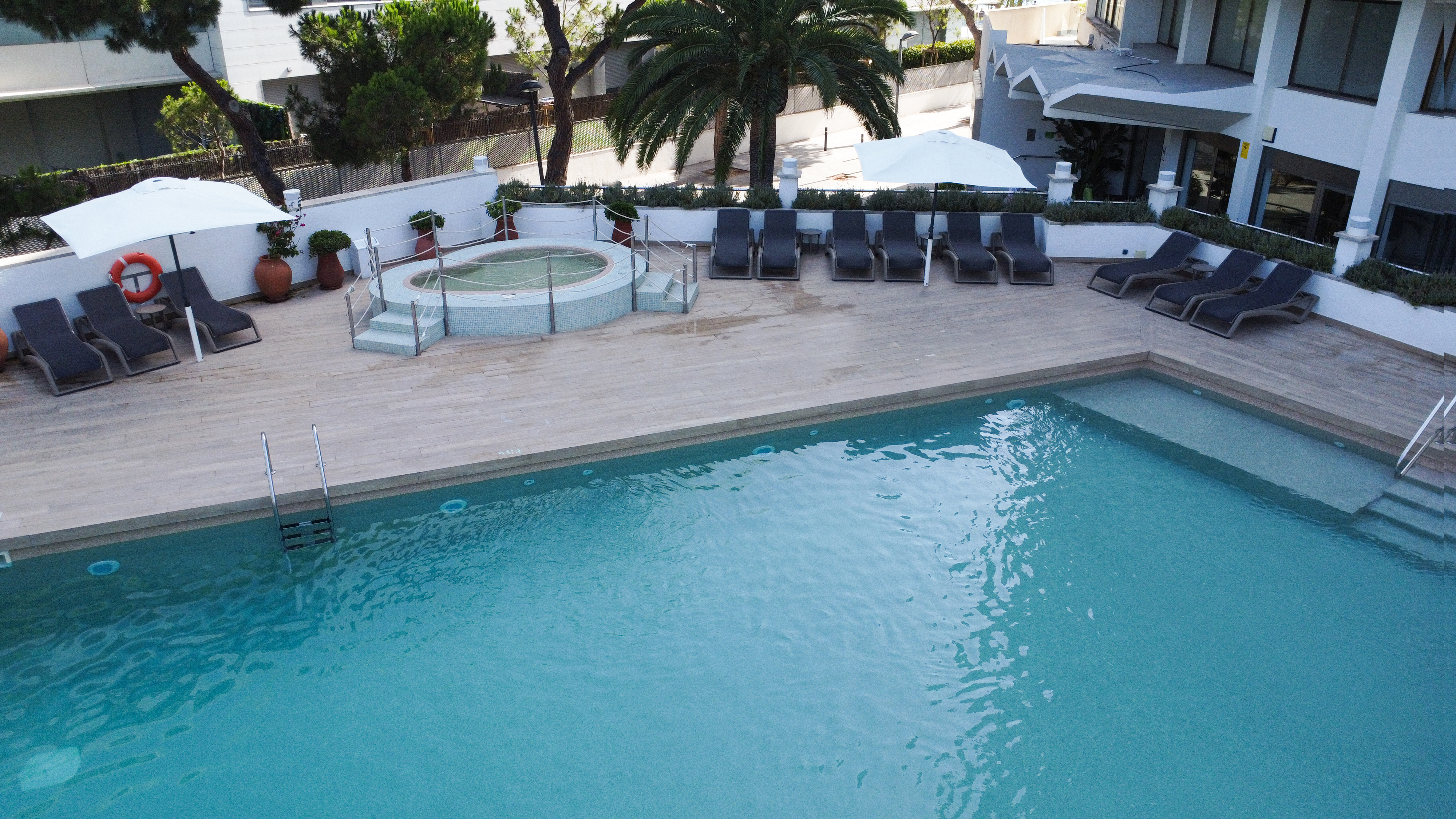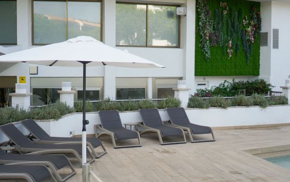 Al voltant de les piscines compta amb una zona amb mobiliari de terrassa exclusiva per a clients de l’hotel, de 10H a 20H.